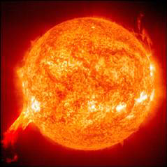 Thus spake Apollo. An eruption 30 times the diamater of the Earth occured on the Sun Monday at 9:19 am EDT, captured by the SOHO satellite. Solar flares can have tremendous impact on both electrical equipment and on the human nervous system. (And did everyone catch this? And how about this?)